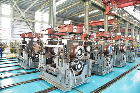 中冶賽迪定減徑機(jī)包括三輥系列和四輥系列,作為鋼管生產(chǎn)過(guò)程中最后一道變形工藝,與多種軋管機(jī)配套以擴(kuò)大產(chǎn)品規(guī)格、提高產(chǎn)品精度、減少軋管機(jī)軋制規(guī)格、提高軋管機(jī)的生產(chǎn)效率。尤其是大張力減徑機(jī)用于使用連鑄坯熱軋生產(chǎn)小口徑管,能耗低,切損少,是一種高效綠色的首選機(jī)型。