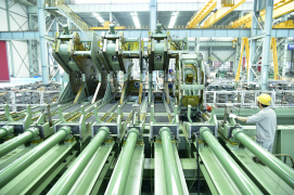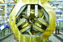 中冶賽迪立式錐形輥穿孔機(jī)廣泛應(yīng)用于各類無(wú)縫鋼管熱軋生產(chǎn)線,把實(shí)心管坯穿制成空心毛管,具有穿孔毛管表面質(zhì)量好、尺寸精度高,工模具消耗低,穿孔效率高、設(shè)備穩(wěn)定性高的突出優(yōu)點(diǎn),可穩(wěn)定高效穿制各種鋼種的管坯。